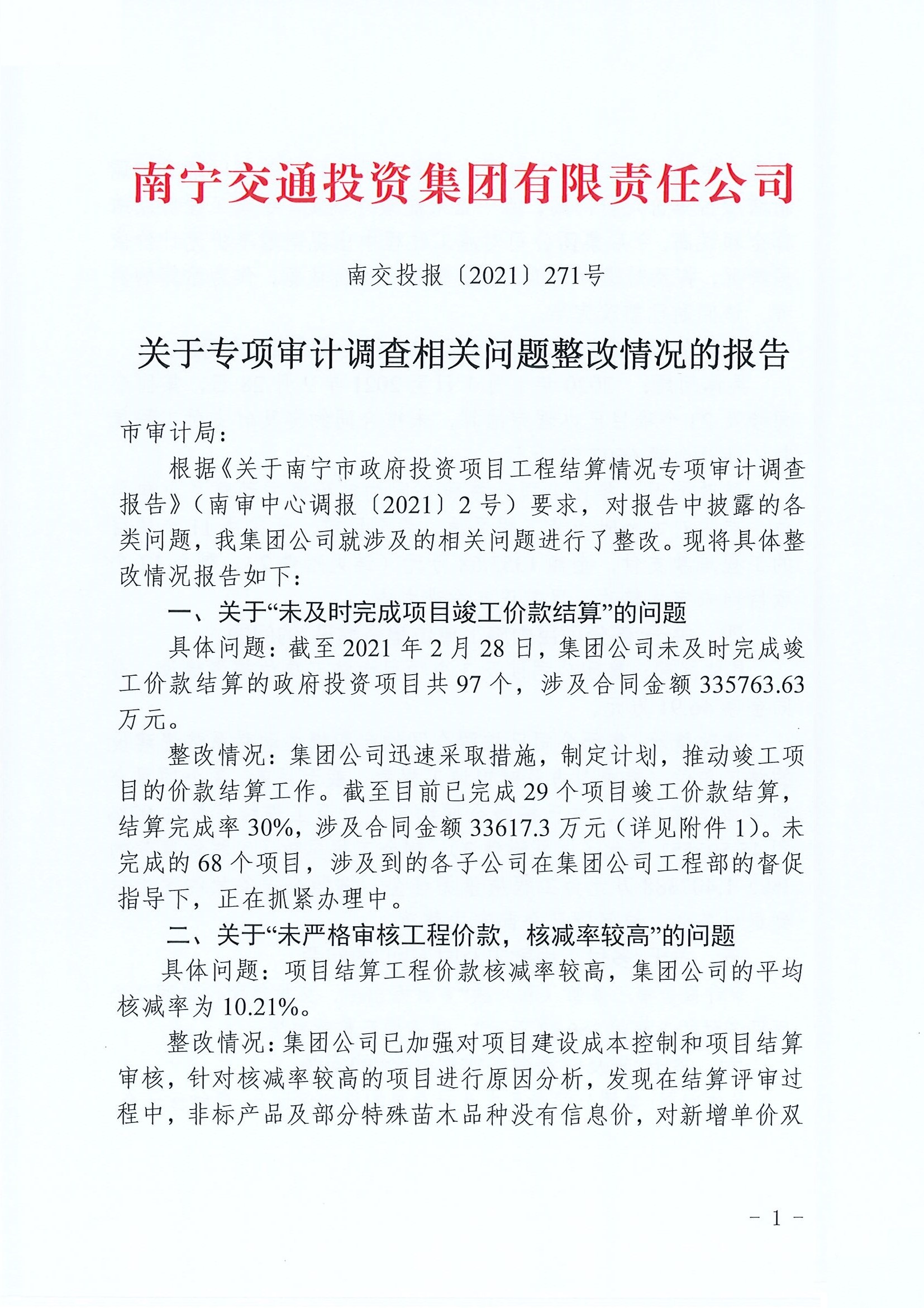 2020年度審計(jì)項(xiàng)目發(fā)現(xiàn)問題整改公開-南寧市政府投資項(xiàng)目工程結(jié)算情況專項(xiàng)審計(jì)調(diào)查