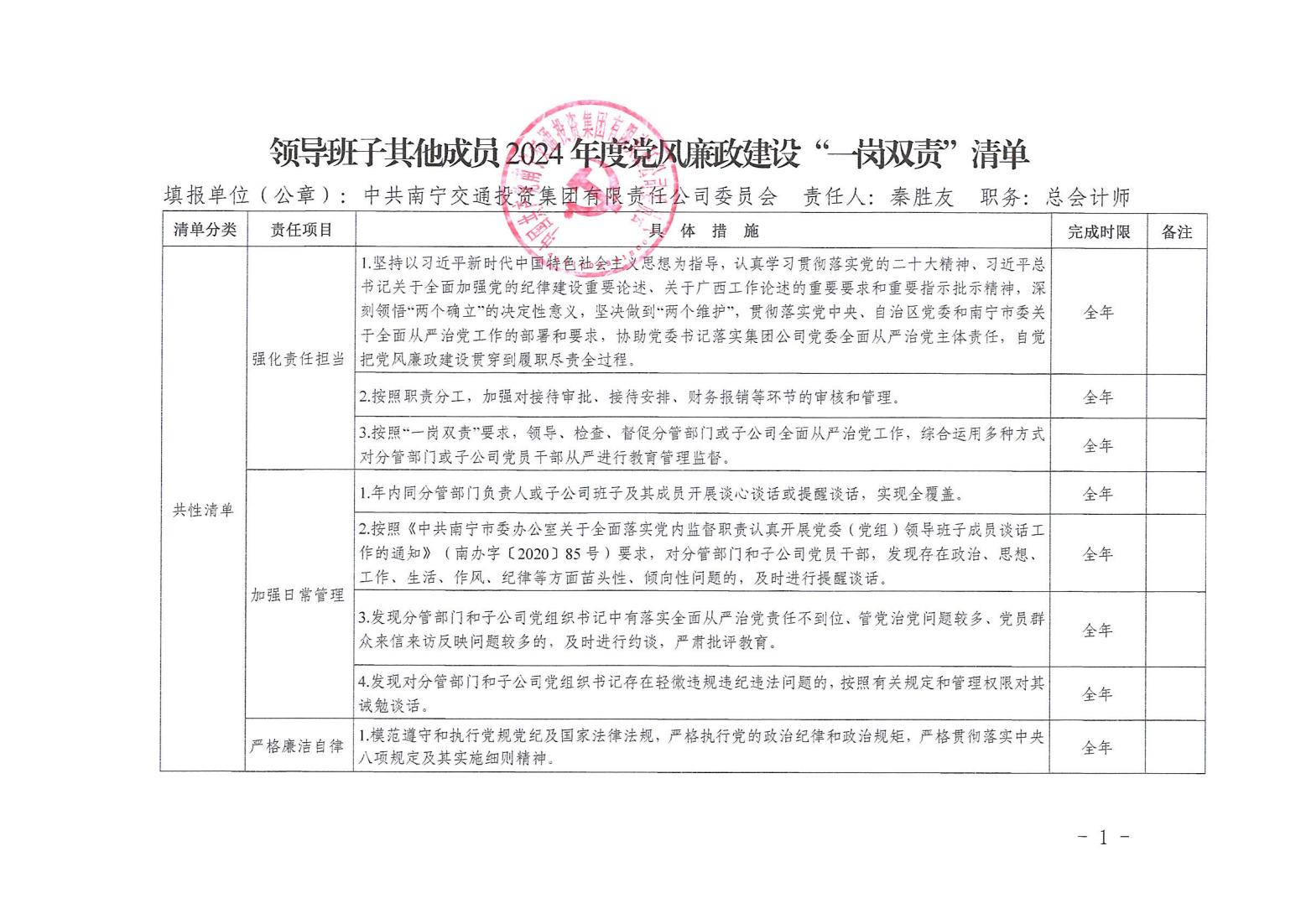 領(lǐng)導(dǎo)班子其他成員2024年度黨風(fēng)廉政建設(shè)“一崗雙責(zé)”清單(八)