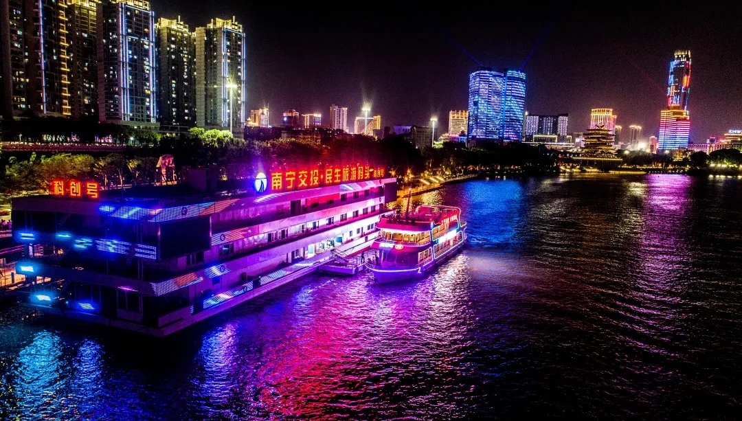 “五一”期間,旅發(fā)公司不僅全班組上崗,同時開放運營民生旅游碼頭和孔廟碼頭,并根據(jù)客流量在晚間客流高峰期靈活增開多個航次,以滿足游客游覽需求。民生旅游碼頭航線途徑暢游閣、壯族神話浮雕、文化長廊等城市中心區(qū)域,展現(xiàn)邕城繁華風(fēng)貌;孔廟碼頭航線途徑南寧大橋、萬達茂、廣西藝術(shù)中心等五象核心區(qū)域,帶領(lǐng)游客感受新城都市韻律。