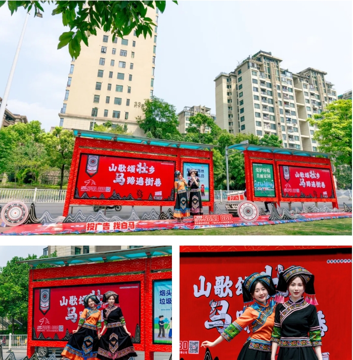 三月三,穿傳統(tǒng)服飾過節(jié)必不可少。瞧,公交候車亭也穿上了節(jié)日的盛裝,鮮艷的色彩、精美的圖案,濃濃的民族風(fēng)情,為城市增添了一道亮麗的風(fēng)景,營造了濃厚的節(jié)日氛圍。圖為賽揚(yáng)傳媒公司員工身著傳統(tǒng)服飾在公交候車亭旁合影。