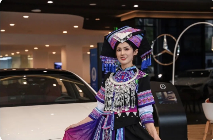 壯族的傳統(tǒng)服飾衣裙顏色為藍(lán)黑色,色澤鮮艷且不易褪色,既耐臟又耐穿,充分體現(xiàn)了壯族人民的智慧和文化,也寄托了壯族人民對美好生活的向往和追求。圖為康城汽車集團(tuán)冠星公司員工展示壯族服飾。
