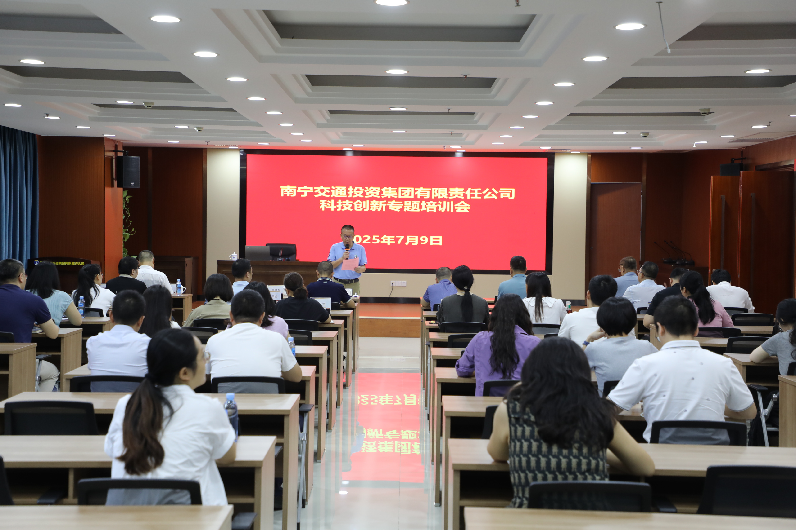 為推動集團公司科技創(chuàng)新專項行動落地見效,7月9日,南寧交投集團組織召開科技創(chuàng)新專題培訓會,特邀三位行業(yè)講師授課,通過系統(tǒng)解讀政策、分享實踐經驗,為集團公司科技創(chuàng)新工作精準賦能。南寧交投集團副總經理羅維松主持培訓會,南寧交投集團各部門負責人及下屬企業(yè)相關人員約40人參加培訓。